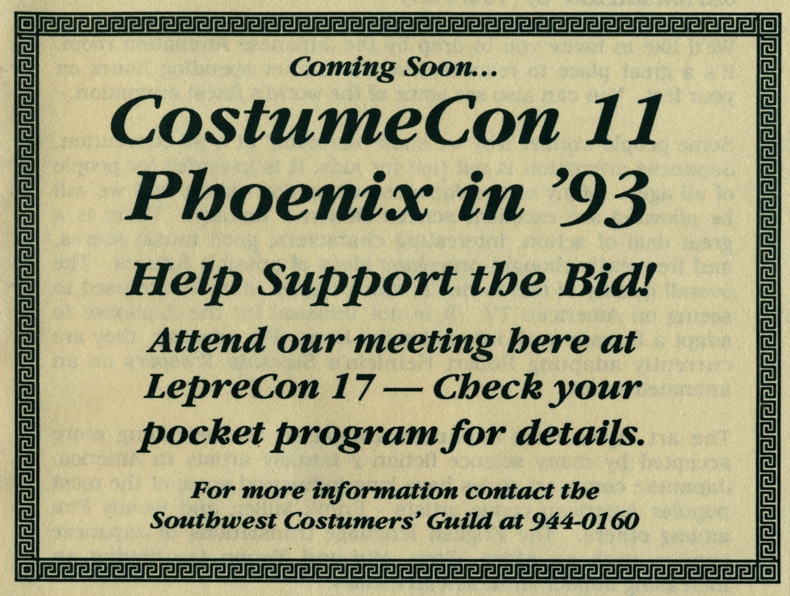 | 1993 | Costume-Con | 11 | Phoenix | Frances Burns & Sharan Hoyle | Pittsburgh, PA | |