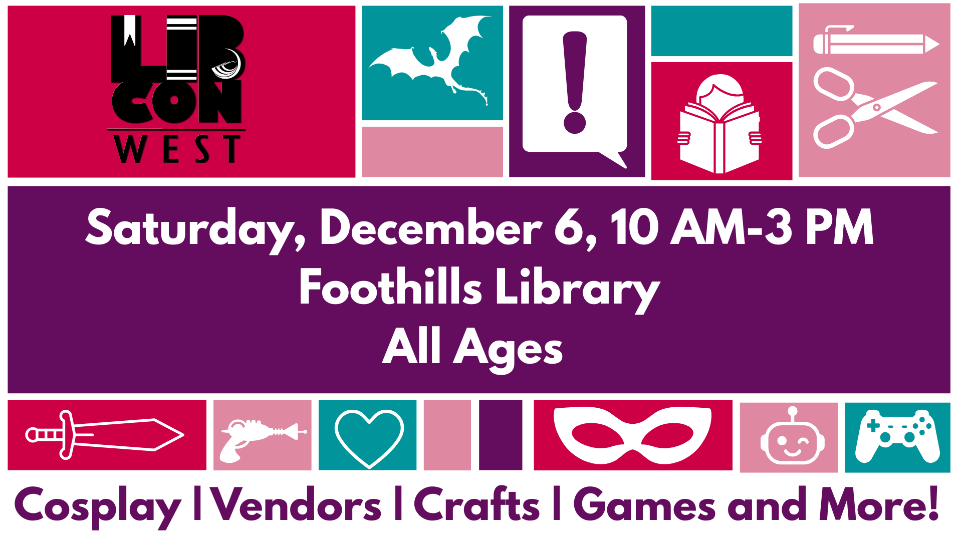 LIBCON West (libconwest.org) is an annual free, all-ages pop culture convention at Glendale Public Library.
