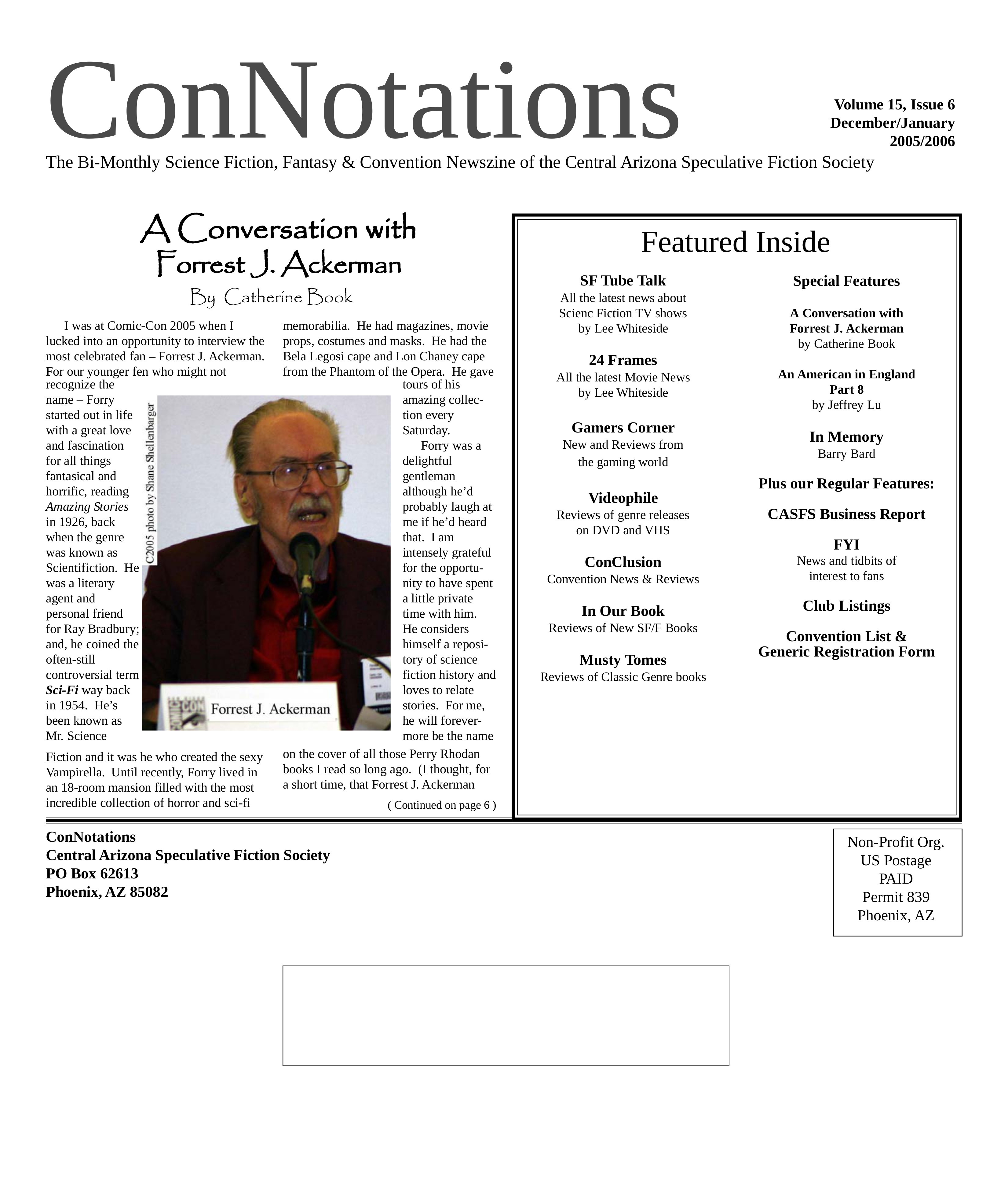 Welcome to our archive of Arizona fandom publications. Here you'll find freely downloadable PDFs of convention material (program books, progress reports, flyers, pocket programs, gaming grids etc.), as well as other publications like fanzines and newszines. If you have something that we don't, whether as a digital file you can share or a physical publication that we can scan, please contact us. |
